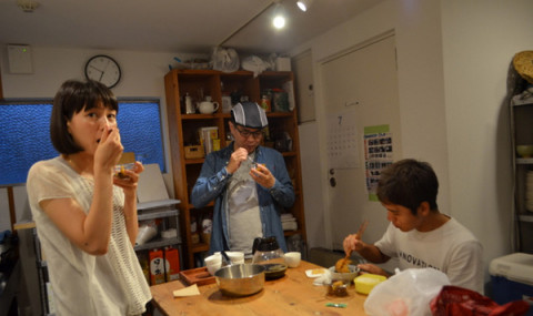ゆうがたのひととき。 わたくしが、キッチンにて あんこをにつめていましたとき、 「どうしても、ねむい」 といいながら、 コーヒーをいれはじめました。 私はなぜまたあんこを煮詰めていたかというと、おやつのおためしづくりをしていたからです。 もちろん、おやつのレシピは、なかしましほさんからとどきました。 なかしま顧問とわたしたちほぼ日おやつ部は、ただいま、大車輪にて、 「ちいさなレシピを1ダース」の書籍化を進めています。 現在は、なかしまさんが 「書籍用書きおろしレシピ」 「書籍用にリライトしたレシピ」をどんどんとおやつ部に送ってくださっているところ。 お盆期間中には、いよいよ 岡尾美代子さんにスタイリングをお願いして、おやつの撮影です。 出版は、汗をかかずにオーブンを使うことができる気温になった頃です。 それまで、ちびちびとこちらで、本の製作過程をご紹介してまいりますね〜! ちなみに、できあがったそのおやつは、いままでに食べた経験のないもので、うまかったなー。 2013/08/02 20:03 |