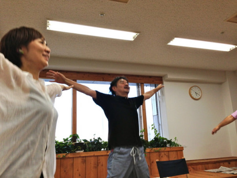 今日はアメリカからやってきたリンジーもいっしょに体操しました。