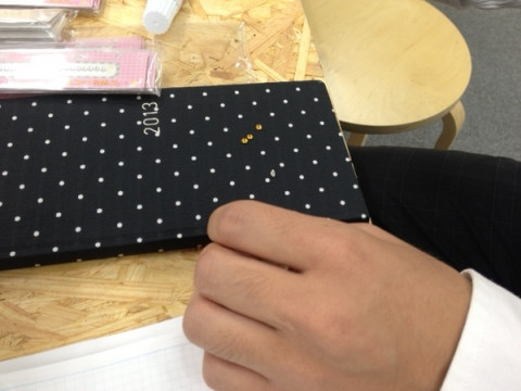 上昇思考で! 打ち合わせをしてたら、大ホールからワイワイガヤガヤweeksのカスタマイズワークショップを楽しむ声が聞こえてきたので、 「ちょっと…私たちもいっちゃいます??」といつもお世話になっている、印刷営業さんの小林さんといっしょにカスタマイズをたのしんじゃいました。 上向き矢印が三本、どんな時も諦めない小林さんの意思が詰まってますねーー! カスタマイズ中にも乗組員たちへの挨拶をかかさない、営業の鑑、小林さんでしたー。 例のモノ、撮影までにはなんとかお願いします! (業務連絡) 2013/08/16 17:05 |