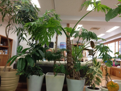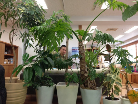 我が社の縁側の会議スペースは、いま植物が集まっておりまして、ちょっとした公園状態になっております。
