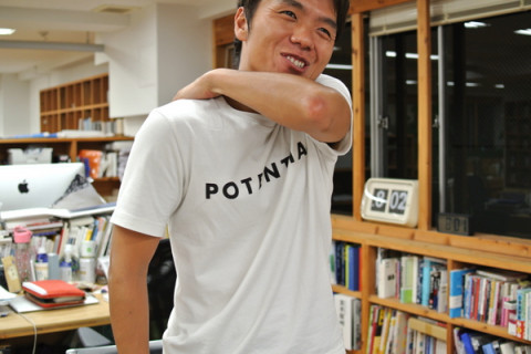 田口何パーセント いま、金曜の夜のような気がするんですけどまだ木曜なんですよね? 「明日自分が出社するか不安になってきた」 と それは、なぜか。 社内の集中力が、週末並だからです。 3枚目の写真のキャプションは 「しーーーーーーん、カチカチカチカチ」 です。 そんななか、はっちゃけてるように見えるこの人物、デザイナー なにを隠そう、ほぼ日手帳WEB SHOP 担当デザイナーです。 現在、社内でいちばん、追いつめられている男! いやいや、田口は、なにもこの時期だけでなく、つねに追いつめられがちなタイプです。 その昔、みんなが 「たぐちゃん、いま、田口何パーセント?」 (どのくらいの余裕が残ってるか)と、挨拶がわりに訊くのがはやっていたほど。 (その頃のこと、まとめてありました) そのときをなつかしく思い出し、いま、まんをじして、皆で訊ねてみました。 せーの、たぐちゃん、いま、田口何パーセント? 「10パーセントです!」 低っっっっ!! 9月1日まで、まる2日あるよ。 でも、大丈夫です。 5枚目の写真は、2008年2月に田口5パーセントだったときの勇姿です。 たぐちゃん、まだまだいけるゾ。 Tシャツのとおり、田口 the POTENTIAL! 2013/08/29 20:14 |