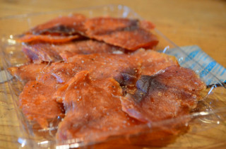 その3 さて、ナッツで珍味旨味100倍の法則を発見した我々。 最後は、「サーモンチップス」。 サーモンを薄切りにして、燻製+ガーリック&ペッパーです。 「もうね、これはね、 ご飯がいただけますね。 ご飯。」 「もうね、これはね、 肉。肉だよ。 やっぱり鮭は偉大。」 「うんうん。」 と、そんなことをしていたら、9月1日の 「ほぼ日手帳2014」の販売をまえに、てんてこ舞いなリーダー・ 「嗚呼! これはおいしいです!」 そういって去って行きました。 以上、珍味研究ゼミナールでした。 では、みなさんもハバナイス・珍! 2013/08/30 23:06 |