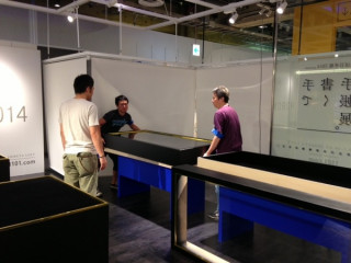 が展示台の位置を決め、