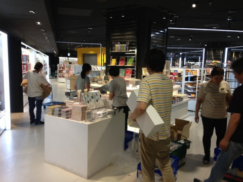 閉店後のロフトは大忙し。 こちら閉店後の渋谷ロフトです。 手で書く手帳展の装飾の仕上げ、トーク用ステージの準備、音響チェック。 そして! ほほ日手帳とホワイトボードカレンダーの陳列がされていきます。 きっと全国のロフトで、同じように陳列がされていってますよね。 ロフトのみなさん、ありがとうございます! いよいよ、明日9月1日、ロフトは開店とともに、ほぼ日ストアは11時にほほ日手帳2014の発売です。 ワクワク、ドキドキ、どうぞよろしくお願いします! 2013/08/31 23:09 |