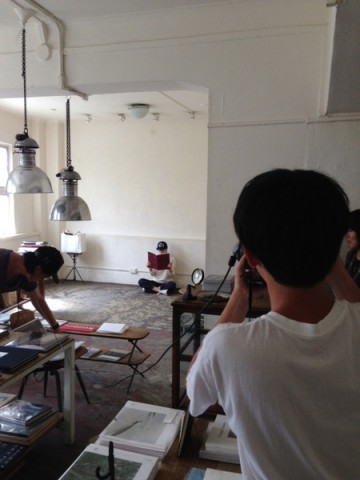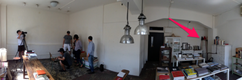 白川さんの距離。 ただいま、三國万里子さんの編み物キットなどのお店を準備しています。 きょうはその撮影で、 「森岡書店」さんというところにお邪魔しています。 いつもお世話になっているカメラマンの白川青史さんは、 「距離」をたっぷりととって被写体を狙います。 iPhoneのパノラマ機能でその様子を写してみました。 矢印が、撮るべきものです。 この部屋の角から角、対角線に距離をとって大きなレンズでパシャリ。 人物も同じように遠くから撮ります。 野外での撮影では、もっと遠くから撮るんですよ。 そんな白川さんの写真と岡尾美代子さんのスタイリングですばらしいカットがどんどん撮れていきます。 つまり、撮影は快調。 編み物好きなみなさん、どうぞおたのしみに! かわいいの、編めますよー。 2013/09/03 11:44 |