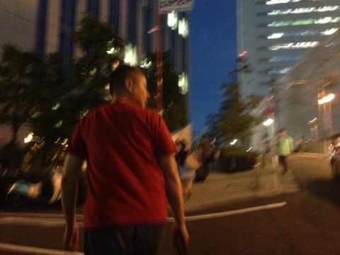 打ち合わせが終わり、ただいま社長の背を追って急勾配をあがっております。