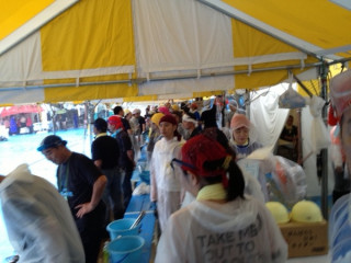 ざーざー降りのお天気ですが、さんま祭は雨天決行。雨天結構!です。