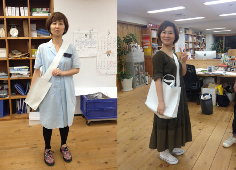 あしたまでです。 現在受注販売を受付中の 「白い革のバッグ」。 伊藤まさこさんから、 「革バッグ、届きました!」とメールをいただきました。 赤い靴とあわせたコーディネート、ページとまた違ったイメージでかわいいですね。 ここまでプレーンなデザインで、いろんな持ち方ができる便利なバッグ、なかなかないですよ〜。 肩掛けにするとすこし行動的でかわいいイメージ。 手持ちにすると、おしとやかで大人っぽい。 受注販売があした19日の11時締め切りなので、乗組員たちもあわてて検討しています。 「ほしいなあ、いいなあ。」 と言ってはしばしば私のところへ試着にきていました。 (どっちの服にもあってますよね。) 「ここにほぼ日手帳がぴったりだー!」と叫んでいました。 19日の午前11時で販売は締め切りになり、再販売の予定もいまのところ未定なので、今のうちにご検討くださいね〜。 2013/09/19 15:37 |