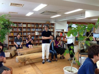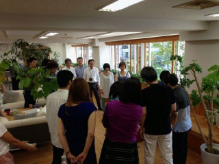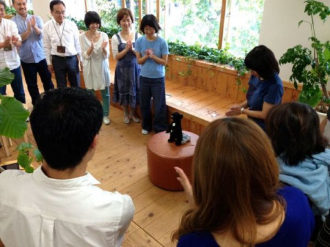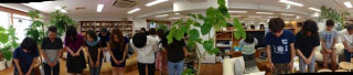 紹介されました。 昨日ここでもちょこっと登場した 「りありー?」さん。 今日の朝のミーティングで、紹介されました。 「あたらしい乗組員のなかまが ふえました。りありー?さんです」 という一声に、ワーっと人が集まります。 その中心には、いましたいました。 小さいから見えなかったけど、いらっしゃいました。 りありー?さんは言いました。 「コネ入社ですが、よろしくお願いします」 あ、よ、よろしくお願いします。 「いろいろ期待しててください」 どういう方なのか、まだつかめないけど、ユニークな方なんでしょう。 というわけで、一同、礼! それをパノラマで撮ってみました。 りありー?さん、よろしくお願いしまーす。 2013/09/20 13:35 |