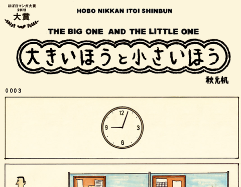 本日最終日です。 先月から連載がはじまった、マンガ大賞2012大賞受賞者の秋本机(あきもとつくえ)さんの 「大きいほうと小さいほう」 ご覧いただけましたでしょうか? webならではのダイナミックなコマ割り&展開で毎度原稿が届くたびにわれわれ度肝を抜かれております。 さてさて、そんな秋本机さんが、青山で開催されている 「アートブックフェア2013(本日最終日)」に今年も出店されているそうです。 昨年、出店ブースに 遊びに行かせてもらったときは、マンガ大賞に応募したときの 「大きいほうと小さい方」が小さい絵本で置かれていました。 今年はどんな作品が置かれているか楽しみです。 わたしもこれから行ってみたいと思います。 お近くにお立ち寄りの際はぜひ会場に足を運んでみてください。 おもしろい本がたくさんあって眺めてるだけでワクワクします。 「アートブックフェア2013」 会期:〜9 月23 日 (月・祝) 11:00-19:00まで会場:京都造形芸術大学・東北芸術工科大学 外苑キャンパス東京都港区北青山1-7-15 2013/09/23 13:18 |