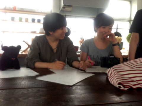 準備は快調です。 10月4日からに決まった、 ほぼ日ボーダーショップの追加販売。 この連休には、轟木節子さんの 「スマートボーダー」の追加撮影も行い、準備は快調にすすんでいます。 轟木さんとカメラマンの神ノ川さんの撮影前の打ち合わせも、なごやかな雰囲気。 あれ? その横で資料を真剣に見ているのは‥‥。 あっ、新入り乗組員の 手伝いに来てくれたのはうれしいけど、やってもらう仕事、とくにないんだよね。 うーん、じゃあ、とりあえず、モデルさん用のお茶でも買ってきてくれる? ちゃんとわかったのかどうか、 <つづく> 2013/09/24 15:12 |