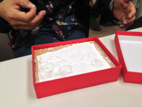 そのクッキーは、2枚目の写真のように、ひとつひとつが粉の中にうずもれた形状をしております。