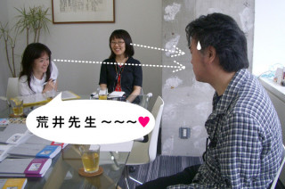 さて、本題ですが‥‥。 じつは、この本には書き下ろしマンガがつくのですよ! 問題は荒井先生が、連載の合間をぬっていつ原稿をかかれるのか! モギ「あの〜荒井先生、 1週間でどうですか?」 先生「‥‥普段の連載もありますから‥‥」 甲野「発売日をきめたいので‥‥」 先生「5月いっぱいかと 思っていたのですが‥‥」 口には出せませんが、実際に入稿データを作るのは私なので、こころの中で、モギさんを応援していました。 ‥‥のつもりでしたが写真をみるとばっちり、催促の顔をしていました。 荒井先生! なにとぞ! よろしくお願いいたしますー。 青山から大きな声でエールをお送りします! 2007/05/18 18:13 |