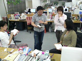 会議室を使った本格的な会議も定期的にずっと行っているのですが、なにか気になることがあるとこうしてチャチャッと集まって立ち話で打ち合わせるのです。