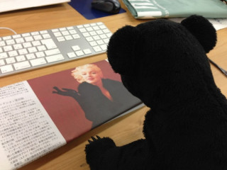 マリリン・モンローさんの新聞記事を熱心に読んでいるようです。