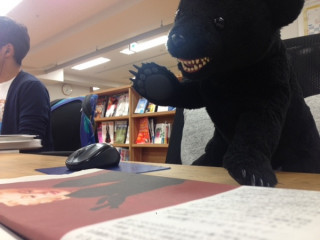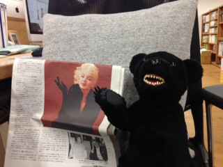 ふと横を向くと、なんと、まだ熱心に前のめりに、モンローさんを見ている