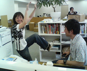 おもしろうちあわせ! 「永田さん、永田さん」 「‥‥(笑)」 という現場を撮ってみました。 写真が下手だの、ピンボケだの、どうしたら、そんな風に撮れるんだとさんざん言われている私としてはけっこう上手に撮れてませんか? って、つたない写真を自慢をしている場合じゃなかった。 この二人がなんの話をしているか聞き耳を立ててみると、どうやら本の印刷や入稿に向けて作戦を練っている様子。 なにをするのも、どんな状況でも、楽しそうでなによりです。 2007/05/31 15:18 |
