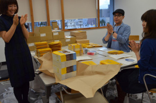 見本が届きました。 わ〜〜い。わ〜〜い。 なかしましほさんの書籍 「みんなのおやつ」が刷り上がりまして、見本が本日とどきました〜! わあ、ほんとにかわいい。 かわいい本になりましたよ。 そして、今日は「ほぼ日ストア」で購入するとついてくる、なかしまさんが「みんなのおやつ」の33レシピを全部動画で解説してくれるDVDも出来上がりました。 こちらは、台紙とDVDが別々にできあがったので、社内の会議室でぺたぺた台紙にはりつけました。 その数、5000。 思えば弊社はかつては、ほぼ日ストアの商品を自前で発送していた時代がありまして、そのころもわたくしこの会社に努めておりましたのでこのような作業は案外経験がありますが、ひさしぶりの5000という数字はなかなかのものでした。 たぶん、寄る年波もあるとおもいますが。 さきほど、それも終了してめでたく発送されていきました。 10月18日(金)の午前11時からほぼ日ストアならびに、ネット書店と全国特約書店で販売開始いたしま〜す。 2013/10/09 18:39 |