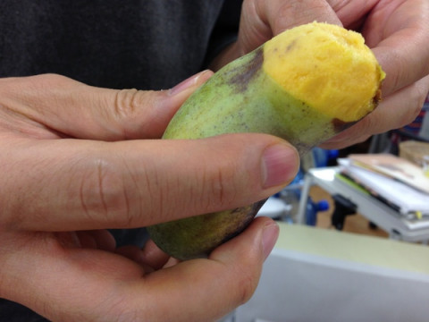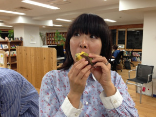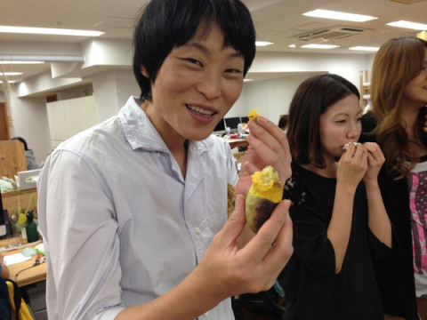 ポポー 取引先の方より、贈りもので、りんごをたくさんいただきました。 秋映、シナノゴールド、シナノドルチェ、アルプス乙女など、いろんな種類のりんごが入っていてみんな大感激。 なかよく分けて、いただきました。 箱をよく見ると、そこにひとつちいさなくだものが入っていました。 ポポーと書いてあります。 みんな、この見知らぬ果実には手をのばさなかったので、りんごの山分けに出遅れた 「じゃ、ぼくはこれをいただきます」 と言って、それを手にしました。 そこにいた4人の女 「すぐに食べてくださいって 箱に書いてあるよ!」 と、指摘しました。 そうです、この者たちは、自分が知らない果実に手を出すのは怖い、それよりはりんごをもらった、けれども、味見をぜひともしたい、そう思ってそこに居残った面々でした。 当然、くれるのだろうな。 と思っていましたが、オカムラは案の定気づかず、 「これはなんと言っていい味かな。 すごい勢いで種が出てくるんだけど、 えーと、南国っぽい味です」 と、つかみどころのない感想を言うのみでしたので4人声をそろえて、 「ひとくちちょうだい」 と言い、奪い取りました。 ぱっと見、焼き芋のようなそのポポーは、とてもやわらかく、バナナのような、パパイヤのような、あっさりしたマンゴーのような、日本じゃない甘さなのだけれどもそんなに重くない、というやさしい味がしました。 採れたてでしかきっと味わえないこの完熟のやわらかなものを混ぜて送ってくださった方、ありがとうございます。 ごちそうさまでした。 2013/10/15 18:59 |