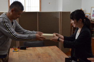 あんこロードに人が‥‥。 あれ? この、「糸井重里ときょうのあんこ」で、BRUTUS堂さんが、ひたすら往復をした、あんこロードに人影が。 あああ、あれは! 「あんこのワークショップ」でごいっしょさせていただいた 「とらや」の本田さんと松平さん! なんと、「献上の儀」もやっていただいてしまいました。 今日は、本田さんがつくられた和菓子をおもちいただきました。 このお菓子については、後日、 本田さんがいらしたので、もちろん「新・まんじゅうこわい」のJPも同席です。 あん国大統領閣下も、とらやさんのお菓子に大満足。 いつものあんこを食べた時のすばらしい微笑み、 「あん笑い」がでておりました。 本田さん、松平さんと、BRUTUSさんの 「あんこ特集号」についてお話をしたり、 (雑誌にももちろん「とらや」さん 登場しますよ!) さいきん登場の 「こしあん原理主義」についてお話をしたりなどなど。 以上、大統領閣下のすてきな午後、のレポートをおおくりしました。 2013/10/16 17:01 |