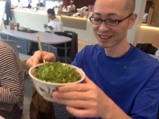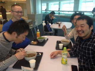 羽田空港でおしゃれにビジネスパーソンよろしくコーヒーを飲んでいたら、そばを食べる大集団に会いました。