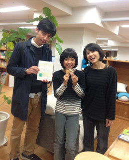 うれしいご報告 さきほど、イラストレーター・漫画家の えちがわのりゆきさんが遊びに来てくれました! あれは1年半前、入社したての私が このTシャツを着ていたところ、 すると、その様子を「ただいま製作中」で見たイラストレーターの福田利之さんがTシャツの絵の作者であるえちがわさんとお知り合いでご本人に報告してくださったというなんともうれしい事件があったんです。 その後も個展に行かせていただいたり、えちがわさんが「ほぼ日マンガ大賞」に応募してくださったりと(結果は佳作でした!) ご縁がつながっていたのですが‥‥ なんとえちがわさん、このたび絵本を初出版されたということで、こんなかわいいクッキーと絵本を持ってほぼ日に遊びに来てくださいました! ちょうどあーちんが来ていたのでクッキーをおすそわけ。 「かわいい〜! これ知ってる!」と喜んでくれました。 なんとあーちんは、えちがわさんの人形劇をみたことがあるそうです。 せっかくなので、えちがわさん、あーちん、おおたかの3人で記念撮影! 絵本『うんころもち れっしゃ』はリトルモアから発売中です。 (ブックデザインは有山達也さん!) また、表参道の青山ブックセンター本店にて11月4日まで原画展を行っているとのこと。 (11月2日には人形劇もあるそうです) とってもかわいくて癒されるので、興味がある方は、ぜひ行ってみてくださいねー。 2013/10/29 21:00 |