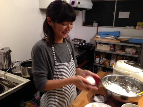お椀にお米をいれ、スナップを効かせつつ、かるくまとめ、少し冷めてきたところを