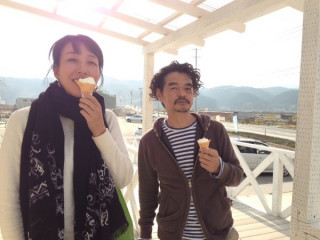 これから気仙沼に向かうのですが、その途中、陸前高田の八木澤商店さんの一本松店に立ち寄ってソフトクリームを食べました。