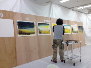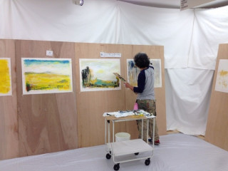 ものフェス 現在、19時半。 後半のキッチンである、なかしましほさんのところからは 「おつかれさまでしたー」 という、拍手が聞こえました。 谷川さんもいらっしゃいました。 こちら、大会議室では、荒井良二さんの絵本が、進んでいます。 さきほど、20枚目の絵の背景が終わり、これから頭の方に戻り、絵を入れていくようです。 ロバはどこに、入ってくるのでしょうか! 「やっぱ枚数多かったかなぁ…」 と、言いつつも、ここまできました、すごいです! 他の部屋もまだやっていますし、引き続き、おたのしみくださーい。 2013/11/16 19:45 |