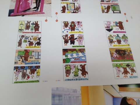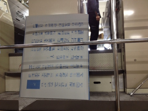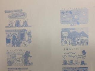 くまお本の生まれる直前 印刷機の横で待つ「くまお」の版は、畳より、ふたまわりくらい大きい、予想以上のサイズ! シアン、マゼンタ、イエロー、ブラックの4版が並んでいる様は、なかなか圧巻です。 でも、近寄ってよく見ると、たしかに「くまお」の4コマ。 CMYKのそれぞれの版で見ても、くまおのかわいさは、かわりません。 裏表同時に印刷できて、一度になんと、64ページ分が刷れる機械だそうで、128ページの『くまお はじまりの本』は、ちょうど、1回、版をセットしなおすと、できる計算。 このサイズで印刷できる印刷機は、日本に3台くらいしかないんだとか。 あーちんが聞いたら、びっくりしそう。 明るい「くまお」カラーを再現するため、インクも特別なインクを使ってるので、色校も、とってもカラフルです! 本の形になるまで、あともう少し。 できあがりがたのしみだー。 2013/11/18 12:24 |