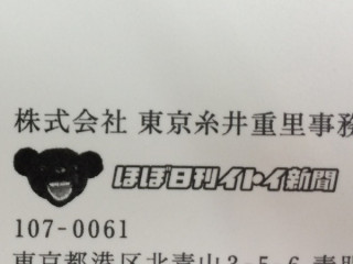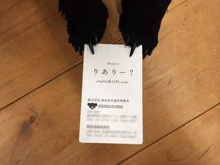 名刺ができた。 む、背後に気配が。 そう思って振り返ってみると、そこには、りありー?さん。 何か手に持って、見せたがっています。 どうしたの、なに、それ? と、近づいて見てみると‥‥。 あっ、りありー?、自分の名刺ができたのか! そっか、忘れてたけど、社員だもんな。 しかしこの名刺、何かが微妙にヘンだ。 さらに近づいてみると、 「ほぼ日」のおさるのマークのところが、なんと、りありー?自身の顔になっていました。 そんなスペシャルな名刺をつくってもらえるなんて、さすが社長のコネ入社だなあ。 どうやら、せっかくできた名刺を、配りたくてしょうがないみたい。 じゃあ、配れるところに行こうか。 (つづく) 2013/11/18 17:21 |