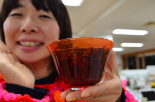 あまりにもこの器が気に入ったため毎日使っているわけですが、容積がたいへんすくないため、かならずなみなみとお湯をそそいでくるのが彼女流!