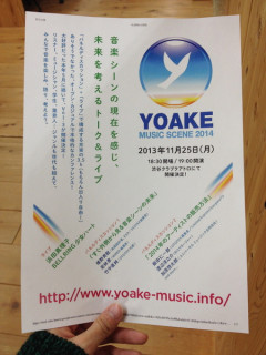 YOAKE! 「どんべいさんと、 音楽マネージメントの話しを。」でお話をうかがった音楽プロデューサーのどんべいさんこと、永田純さん関わっているイベントが 「YOAKE」の第3回が、25日の月曜日に行われるそうです! 音楽シーンの未来について音楽雑誌の編集長や楽器設計者など、さまざまなジャンルの人とトークを繰り広げたり、ライブが行われたりするイベントです。 と書くと、なんだかお堅いイベントなのかしら? と感じられるかもしれませんが、わたしはこのイベントの第1回におじゃまさせていただき、フランスで一番有名な日本人だという レ・ロマネスクを知ったのでした。 かなりの衝撃とともに、彼らが振りまくアムール(愛)を感じ、ファンになりました。 そんな出会いがある (かもしれない)イベントが25日の夜に行われますので、ご都合があえば、ぜひいってみてくださいね。 ーーーーーーーーーーーーーーーーーーーー 「YOAKE vol.3」 日時:11月25日(月) 開場18時半、開演19時 場所:渋谷クラブクワトロ チケット:前売2500円、学割1500円、当日3000円 ライブ:浜田真理子 BELLRING 少女ハート パネルディスカッション: 「すぐ外側から見る音楽シーンの未来」 椎野秀聰 (楽器設計者、ESP/ VESTAX創業者) 若林惠(WIRED 編集長) 竹中直純(OTOTOY代表) 「2014年のアーティストの販売方法 〜そして何故アイドルは売れるのか?〜」 司会 : 飯田仁一郎(OTOTOY編集長/Limited Express (has gone?))加茂啓太郎(Great Hunting)渡辺淳之介(BiSマネージャー)高瀬裕章(でんぱ組.incマネージャー)劔樹人(男の墓場プロダクション) ホームページ: http://www.yoake-music.info/ ーーーーーーーーーーーーーーーーーーーー 2013/11/23 16:01 |