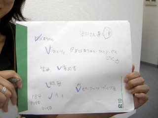 谷川さんの修正 菅野さん、それは何ですか? 「谷川俊太郎さんからの『谷川俊太郎質問箱』の修正希望」 それを、封筒の裏にメモしたわけ? 「そう。あのね、外を歩いているときに 谷川さんから連絡が入ったの」 うん。 「それでね、谷川さんが『いま外? だよね。 いま事務所に電話しても不在だったから そうだよね。 修正してほしいところをいま 口頭でも言えるんだけど、 それよか、あとで FAXとかしたほうがいい?』 とおっしゃるわけ。 もう完全に、いま言うぞ何が何でも、 という声色なので、 いまで大丈夫です、いまがいいです、 いまどうぞ、と返事して、 持っているカバンに封筒があったから すばやく取り出して裏に、 こんなかんじで、 道の端に寄りながら、はい、はい、と」 それをべつに社内で再現しなくても‥‥。 2007/06/22 16:16 |