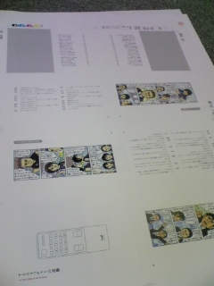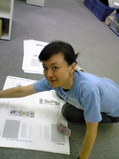 モギコの部屋 本の製作が佳境になってくると日に日にスガノの部屋化するソファエリアですが、ソファの背のほうのエリアは、じつは、モギコの部屋です。 2人は部屋をシェアしています。 電気代も水道代も割り勘です。 冷蔵庫にあるモノは勝手に食べてはいけません。 いえ、ウソでした。ここは会社でした。 というわけで、先ほど、凸版印刷の藤井さんが持ってきてくださった色校の用紙を整理するモギコ。 しっかし、色校の用紙って何時見ても大きいですよねー。 あ、隠れないでくださいよ。 話、まだ終わってないんですってば。 2007/06/22 22:06 |
