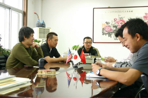 さて、モンゴルに着いたわれらTシャツチームと金子さんは劉社長のオフィスへ。 まずはスタッフのみなさんとごあいさつをすませ、さっそく、打ち合わせ開始。 ちなみに写真中央に見えるのはセンチメンタルテリトリーのシャツを実際に製造する段階で手を貸してくださっている伊藤忠商事の斉藤さんです。 この斉藤さん、洋服の「素材」について語り始めるともうとまらない! 100%ピュアーな大阪弁で、まくしたてるその姿はまさに「なにわのあきんど」(!?)。 今回の旅の道中をなにかと盛りあげて下さいました。 ちなみに、重要な打ち合わせ中、なにがうれしいのでしょうか、いちばん左のハリーがなにやらニヤついていますねぇ。 あとで聞いたらテーブルのまんなかの国旗がまるでじぶんが重要な国際会議に参加してるみたいでうれしくなっちゃったらしいんですよ。 今回は「あるプロジェクト」に関する重要なモノを探しにモンゴルにまで着たというのに、まったく緊張感が感じられません。 この先、大丈夫なのでしょうか‥‥。 2007/06/25 10:47 |
