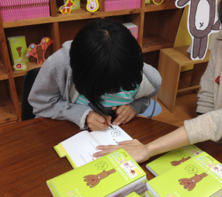 あーちん、ラストスパート! 朝からはじまった、 『くまお はじまりの本』サイン会もいよいよ大詰め。 あーちんも、きっと人生で一番、サインを書いた日です。 (というか、はじめて本ができて、 はじめてサインをした日ですね。) まもなく、テキスト中継は終了ですが、サインのほうは、今日の深夜0時までご注文していただいた分に入りますので、夜になって、気づいたかた、まだ、大丈夫ですよー。 ふうせんくまおも空中から応援してます! 「あーちん、がんばれー!」 2013/11/24 18:49 |