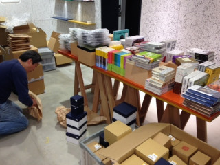 ハラマキ、くびまき、土鍋にカレー皿、本、本、本、他にもいろいろ持って来ています。