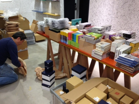 ホソイさんと、入館申請をして、腕章をつけて、ほぼ日ストアづくりにやってきました。