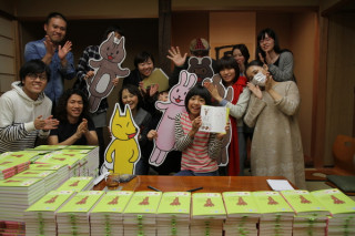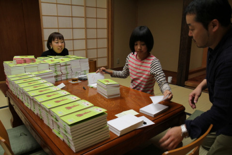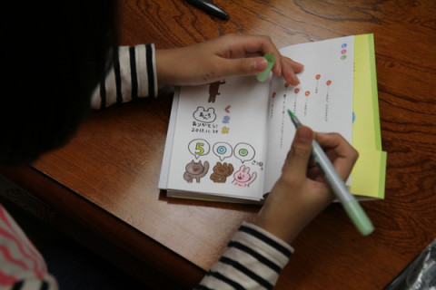 あーちん、サイン継続中! ご覧いただいた方も多いと思いますが、24日の日曜日、あーちんは、ご注文いただいた『くまお はじまりの本』に一冊、一冊、サインをしました。 その日だけで400冊の本にサインを入れたあーちんですが、期間内にご注文いただいた『くまお』はまだまだあるんですよー。 今日も、放課後、時間をつくって 「ほぼ日」に寄ってくれました。 で、せっせせっせとサインして、区切りの500冊目に到達! 恒例のカラフルなイラストを描き添えて、500冊目、終わりましたー。 さて、この本、どなたに届くんでしょう。 最終的に今日は560冊でフィニッシュ。 また明日も、かな? がんばろう、あーちん。 2013/11/25 20:33 |