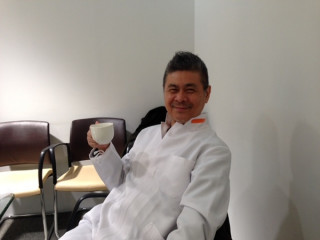 しょうがシロップ 長野のサンクゼールさんに来ています。 しょうがシロップの取材です。 できたてシロップを試飲して、いま、みんな、ぽっかぽかです。 そう、お待たせしている 「手かげんしないしょうがシロップ」、いよいよリスタートの準備が整いつつあるのです。 12月にお届けできる予定。 詳細は後日あらためておしらせいたしますね。 今回も、おいしいですよー。 写真のタイトルは 「余裕の俺」。 そういうタイトルをつけるようにと社長からのリクエストでした。 たしかに、余裕の微笑み。 2013/11/28 11:30 |