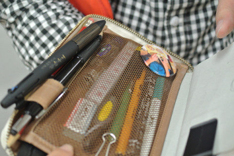 ノースフェイスの ああ、今週日曜で12月がやってきます。 社内がわさわさしているなー、と思ったらそうなんですよ、12月1日はTHE NORTH FACE PURPLE LABELとコラボレーションした手帳カバー 「FIELD PACK」が発売されるのです。 この「FIELD PACK」、社内でも購入希望者が多くて、彼ら彼女らは12月1日をたいへん心待ちにしていました。 「ほぼ日」での販売は11時開始です。 で、写真は手帳制作チームのリーダー 私とは席がおむかいです。 忙しそうです。 「このFIELD PACKは、サブバッグのように ちいさな持ち手がついています。 そして、ほかのジッパーズにくらべて マチが太めに取ってあり、 めっちゃめちゃ! ものが入ります。 うしろのポケットも立体仕様で めっちゃめちゃ! 入ります」 なによりも、この手帳の表紙がこれぞザ・ノースフェイスという感じでかっこいいです。 (くわしい仕様はこちらをごらんください) むねひろリーダーは、ジッパーズが大好きなんです。 自身でいま使っているのもジッパーズ。 めっちゃめちゃ! ものを入れてますね。 びっくり。 で、このジッパーズはポケットにものを入れると書きづらくなる可能性があるので 下敷きのご使用をおすすめしているそうです。 でもね、私も来年ジッパーズでわりと神経質なほうなんですが、ポケットにものを入たまま書いても個人的にはあんがい大丈夫です。 12月なので、うきうきしてさっそく来年の手帳に乗り換えたスガノでした〜。 2013/11/29 17:46 |