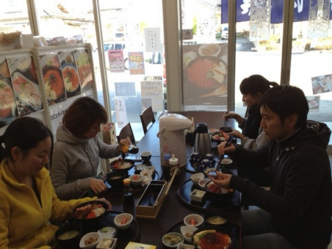 山内鮮魚店さん 気仙沼に来ている、小池さん、冨田さん、西田さん、じゅんぺいは、気仙沼のほぼ日のサユミさんとともに探険をしています。 探険、、、? はい。探険です。 1月のうまけりゃうれるべ市でさらなるうまいもんをお届けするべく、我らは、あたらしいもんハンターとなっているのです! 今回訪れたのは、ほぼ日と気仙沼をむすんでいただいた、宮城県庁の山田さんオススメ、 「山内鮮魚店」さんです。 刺身、加工食品など、いろいろなものがあります。 どれもおいしいと評判のようです! ちなみに、店の中には食堂もあります。 どうやら、いくらたっぷりの 「キラキラ丼」が有名のようで、レッツ、ハンティングです!!! 2013/12/05 14:57 |