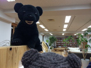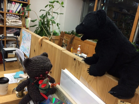 きのうは、くまおを見つめていたりありー?、きょうは、おっくんの席にいるあみぐるみのくまさんと、ずっと見つめ合っています。