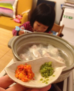 先週7日に吉祥寺で販売し、その日のうちに完売した 『フミ子さんのゆず胡椒』。 明日14日(土)にほんのちょっぴり再販売できることになりました。 カフェ・アマルさんに青ゆず胡椒・・・8瓶 天壺さんに青ゆず胡椒・・・8瓶赤ゆず胡椒・・・3瓶 (黄色は完売いたしました!) 奥様のカオリさんが18時過ぎにお店に納品する予定ですのでそれ以降のお時間にお越しください。 写真は原田家のみなさんが先週の販売会のあと、プチ打ち上げとしておこなった水餃子パーティーの様子です。 餃子には赤ゆず胡椒がぴったり、だったとか。 色を混ぜて使うのもおすすめです、とのことでした。 「自分で作ってみたい!」というかたはどうぞここから作り方のダウンロードを。 ゆずはなるべく新鮮なうちに加工するのがおいしく作るポイントのようです。 週末はおいしい鍋&ゆず胡椒であったまりたいですねー。 2013/12/13 12:27 |