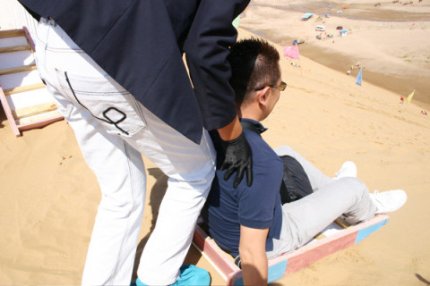 このソリで 滑って降りていくんですよ!