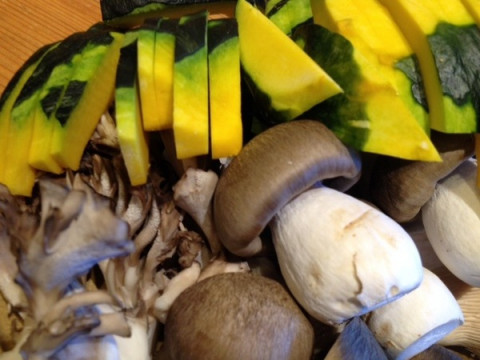 きのこいろいろ&かぼちゃカレーですよ〜。