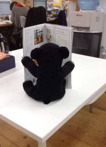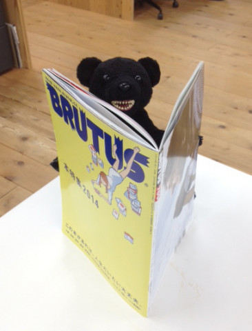 りありー?チェック 月曜日の午後3時。 前に回り込んでみると、それは、今日、16日発売の出たばかりの 『BRUTUS』の最新号! りありー?が熱心に見ているということは、前にここ「ただいま製作中!」に載っていた、 『ダ・ヴィンチ1月号』を見ていたときと同じ状況、ということは…。 そうです。そのようです。 レモンイエローの表紙がかわいい 『BRUTUS 769号』は、「本特集 2014」で、その中の「BRUTUSCOPE」というコーナーに、 『くまお はじまりの本』のレビューが掲載されたのでした! ここでは、 「ほんわか系4コママンガ界にあらわれた ニュースター。」 という見出しとともに、われらが、 「くまお」の本が紹介されています。 映画監督スパイク・ジョーンズの記事ととなり同士で、しかも、あーちん描き下ろしの (「ほぼ日」未掲載)の「くまお」が載っている、『BRUTUS』ならではのレビューです。 「くまお」のページでお伝えしていますように、今週末、22日の日曜日には、渋谷の本屋さん 「SHIBUYA PUBLISHING BOOKSELLERS」で、 「くまお」の出版記念イベントもあります。 『BRUTUS』の「本特集」をチェックして、週末は、お気に入りの本を探しがてら、イベントも、ぜひ、のぞきにきてくださいね。 あーちんもたのしみにしています! 2013/12/16 17:32 |