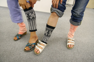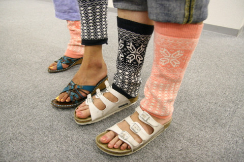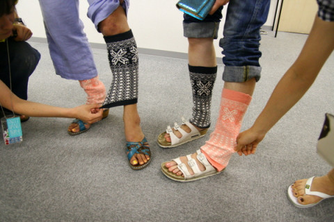 そんなに足首が寒いの? こんにちは。永田です。 なにやら女子部がきゃいきゃいと騒いでいます。 なんでも、ハラマキでお馴染みの白倉ニットさんから新商品の候補のサンプルが届いたとかで。 ていうかね、男子部にはまったく共感できないんですがね、サンダルを好む女子たちは、足首が冷えるらしいんですわ。 で、屋内では、こういう足首をあっためるものが欲しいと。 伸びる素材のタオリンとかならいろいろ便利でばっちしだと。 で、約2名がさっそくそれをつけて試したところ快適だと。 あっという間に人だかりができたと。 ていうかね、男子部にはまったく共感できないんですがね。 だって、足首寒いなら靴下はけばいいじゃん。 サンダルやめればいいじゃん。 そういうものでもないわけ? みなさまからのご意見お待ちしております。 2007/07/03 18:38 |