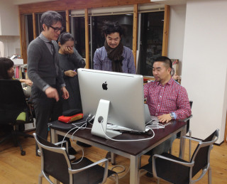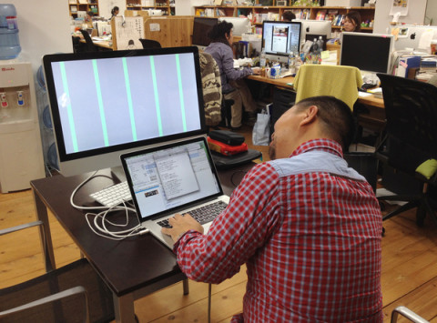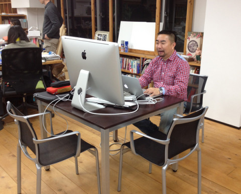 シェフ、師走の変の巻! それは、おとといの夕方、ちょうど、ここ、「ただいま製作中!」に 『くまお』の本が『BRUTUS』に載ったよ!、というニュースをアップしていたときのこと。 となりの席の ふりかえると、そこには、4人掛けのテーブルに、iMacを置いて、急ごしらえのおひとり様特別席に座っている 朝はぜんぜん大丈夫だったのに。 もう修理に出すしかない、と思って とりあえず、自分のMacbookを 家に取りに帰って、いまちょうど、 ターゲットモードにして、データを コピーしているところなんだ。 はぁ〜っ。」 と、一気に説明してくれました。 その騒ぎに、まわりに人が集まってきて、口ぐちに「それは、武井さんのおしゃれ壁紙ですか」とか 「ポールスミス」とか言って、ニヤニヤ。 ひととおりコピーも済んで、これからはしばらく、自分のMacbookを使わなきゃと言って帰った、その翌日。 そのMacbookを立ち上げると‥‥。 今日の「調味料マニア」の中継は、無事、とどこおりなくできますよう、祈ってます。 2013/12/18 16:09 |